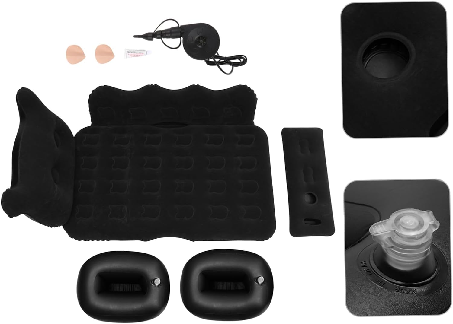 Package List 1 x air pump 2 x pillows 1 x inflatable bed 2 x feet mats 1 x inflatable cushion Features -Size: About 170.00X75.00X27.00cm/66.81X29.48X10.61inch Tent . -Color: Black Outdoor Sleeping Cushion. -Material: PVC, Flocking Inflatable Bed. -It is easy to clean and maintain, is odorless and breathable, and provides comfort during the journey Car Inflatable Bed. -Easy to carry and , this is a very convenient inflatable bed Air Mattress. -Made of PVC and flocking materials, it is , , and comfortable Beach Mat. -Make you have a more comfortable travel experience, your RV use Camping Mat. - workmanship, comfortable and , not easy to damage, Inflatable Mattress.Goods InformationFoldable Ground Mat It has excellent craftsmanship and reasonable design, can bear the more evenly, and allows you to have a more relaxed and comfortable resting environment.Inflatable Bed This is a very RV accessory that can bring more convenience to your travel and driving.Back Seat Inflatable Bed The car inflatable bed is made of PVC and flocking material, which is and